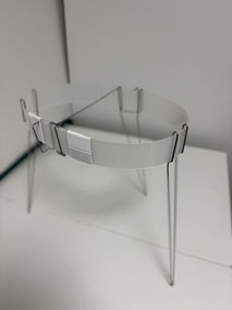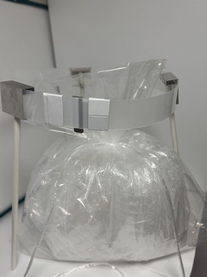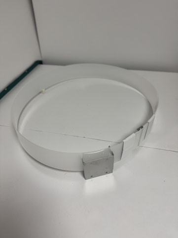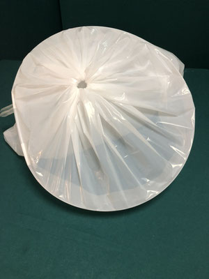 バイタンリングはプラスチックのベルトを輪にして接合部に網ゴムを使って拡がる力を持たせた物で、ポリ袋などの口に嵌めるとポリ袋を開口状態で保持する事のできる治具です。